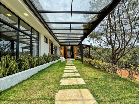 Hermosa y moderna casa en el Alto del Escobero de 300 metros construidos más 100 metros de deck, en un lote de 2.045 metros. La propiedad está ubicada en una parcelación con vigilancia 24 horas y cuenta con 3 habitaciones con baño , la principal y una de las auxiliares con vestier y otra con closet, baño social , cocina abierta y moderna, zona de ropas, sala comedor con doble altura, estudio grande o sala auxiliar en el segundo nivel, deck grande con privacidad y hermosa vista verde y 2 parqueaderos cubiertos.